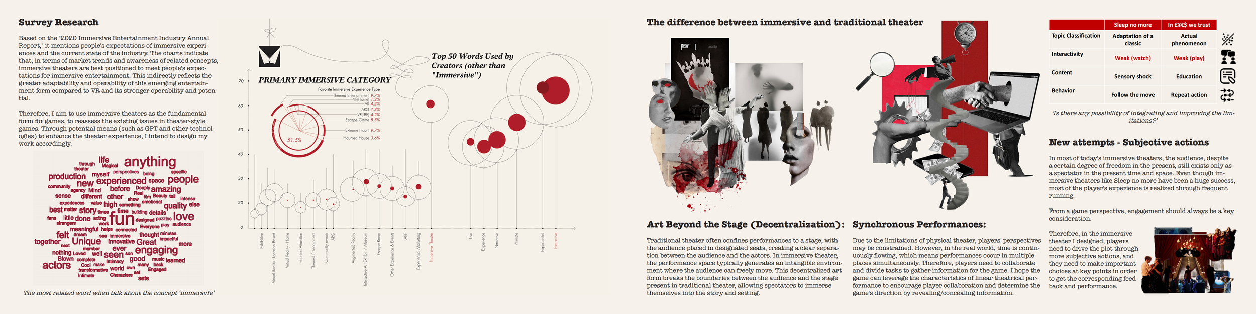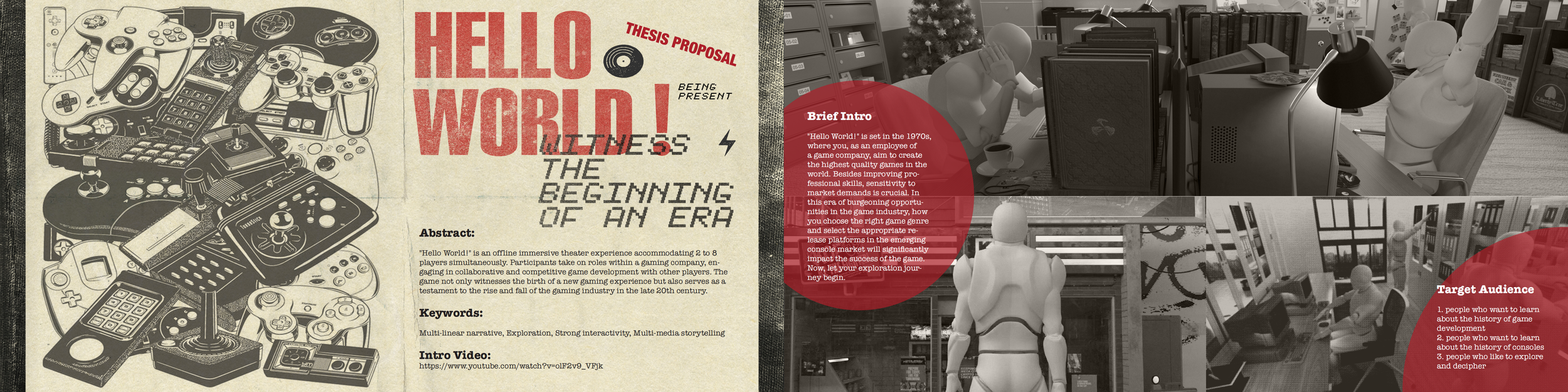 "Hello World!" is an offline immersive theater experience accommodating 2 to 8 players simultaneously. Participants take on roles within a gaming company, engaging in collaborative and competitive game development with other players. The game not only witnesses the birth of a new gaming experience but also serves as a testament to the rise and fall of the gaming industry in the late 20th century.